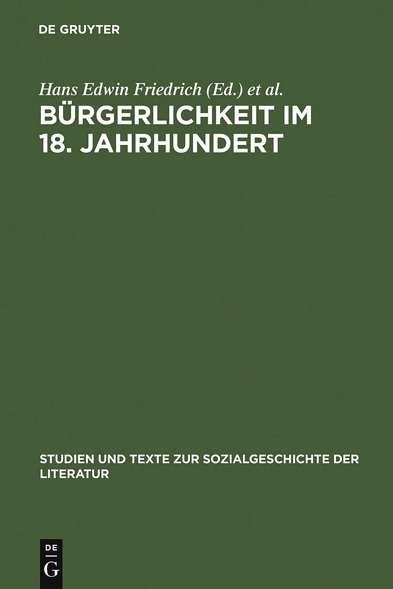 Bürgerlichkeit and Bürger are central concepts in (German) literary history. The emancipation of the Bürgertum (bourgeoisie/middle classes) in the modern age has in fact been identified as the prime source of the profound cultural and socio-structural changes...