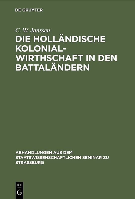 Frontmatter -- VORWORT -- INHALT -- ERKLÄRUNG DER ABKÜRZUNGEN -- EINLEITUNG -- THEIL I. DIE KONKRETEN VERHÄLTNISSE UND DIE PLÄNE DES MINISTERS VAN DEN BOSCH -- THEIL II. DIE EINFÜHRUNG DER KAFFEEKULTUR -- THEIL III. DIE STEUERFRAGE IN DEN BATTADISTRIKTEN UND D...