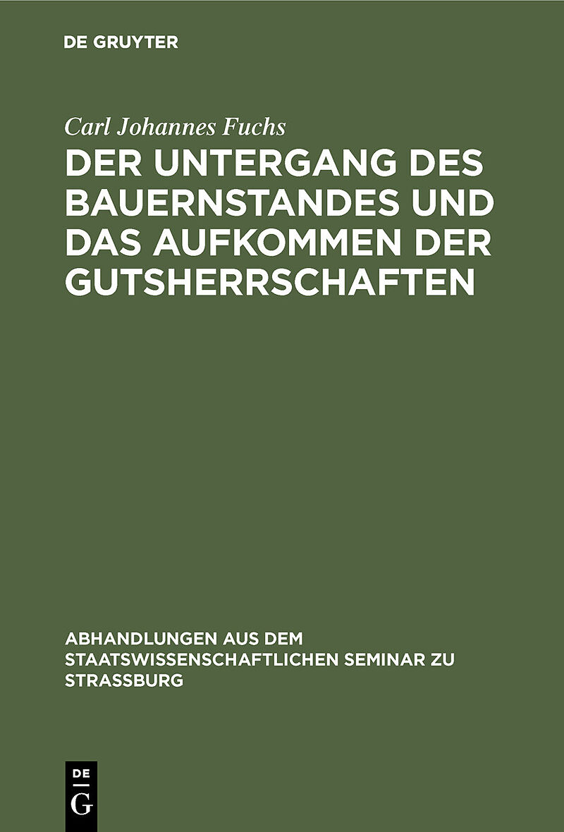 Frontmatter -- Vorwort -- Inhalts-Verzeichnis -- I. Kap.: Geschichte Des Bauernstandes In Pommern Und Rügen Von Der Kolonisation Bis Zum 30Jährigen Krieg -- II. Kap.: Das Jahrhundert Des Grossen Krieges -- III. Kap.: Das XVIII. Jahrhundert Und Die Zeitpacht --...
