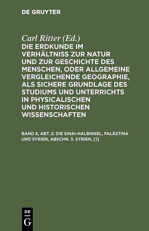 (Gleichzeitig Theil 17.1, Buch 3. West-Asien, des Gesamtwerkes); (Gleichzeitig Band 4.1 des Vergleichende Erdkunde der Sinai-Halbinsel, von Palästina und Syrien)