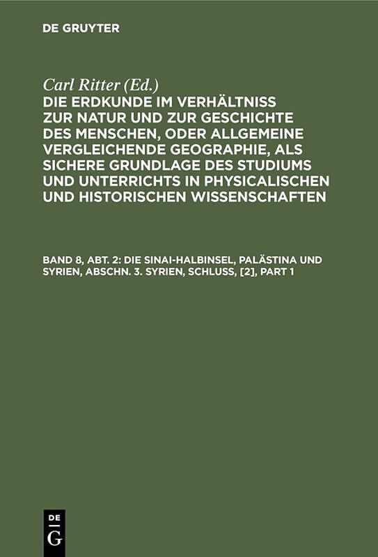 (Gleichzeitig Theil 17.2, Buch 3. West-Asien, des Gesamtwerkes); (Gleichzeitig Band 4.2 des Vergleichende Erdkunde der Sinai-Halbinsel, von Palästina und Syrien)