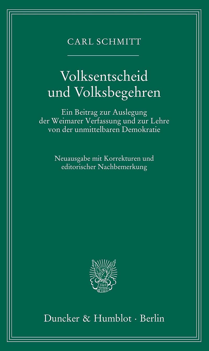 »Volksentscheid und Volksbegehren« von Carl Schmitt ist zuerst 1927 erschienen. Die Auslegung moderner Verfassungen führt zu grundsätzlichen Fragen der Demokratie. Die in dieser schmalen Schrift skizzierten Antworten werden in Schmitts »Verfassungslehre« von ...