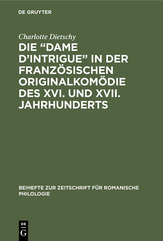 Dieser Titel, "Die Dame d'Intrigue in der französischen Originalkomödie des XVI. und XVII. Jahrhunderts", ist eine wissenschaftliche Publikation, erschienen bei De Gruyter Brill. Ausführliche Beschreibung, Inhaltsverzeichnis und weitere Angaben finden Sie auf ...