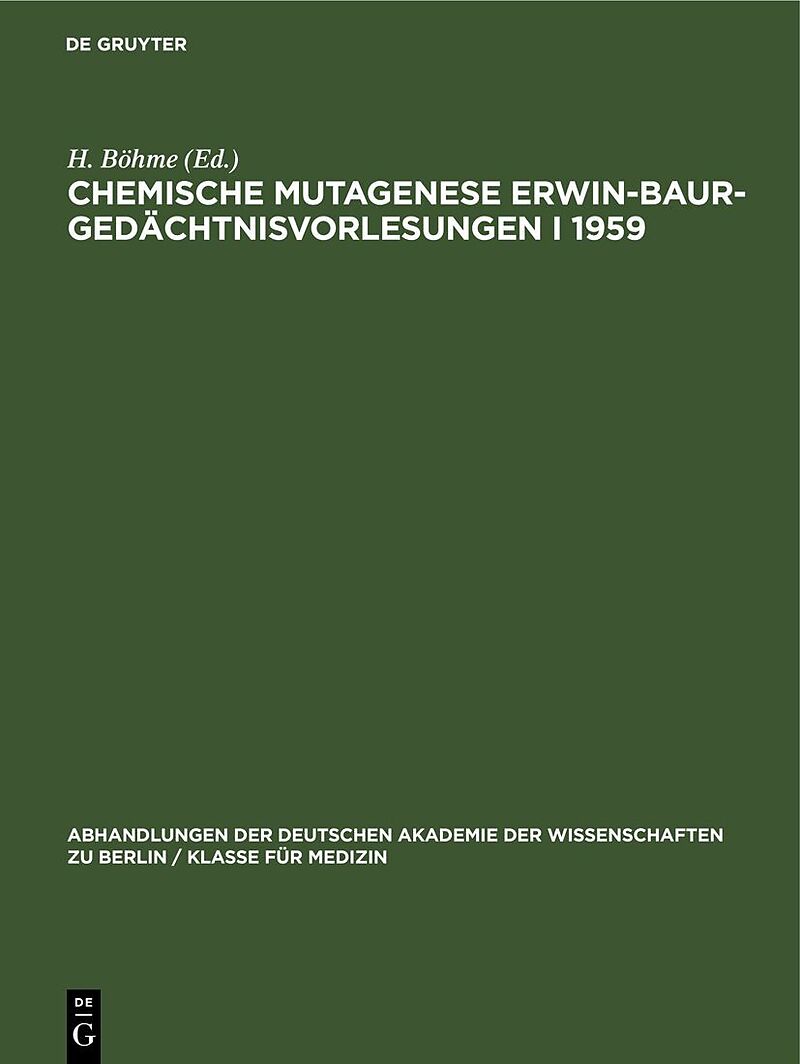 Dieser Titel, "Chemische Mutagenese Erwin-Baur-Gedächtnisvorlesungen I 1959", ist eine wissenschaftliche Publikation, erschienen bei De Gruyter Brill. Ausführliche Beschreibung, Inhaltsverzeichnis und weitere Angaben finden Sie auf der Verlagswebsite: https://...