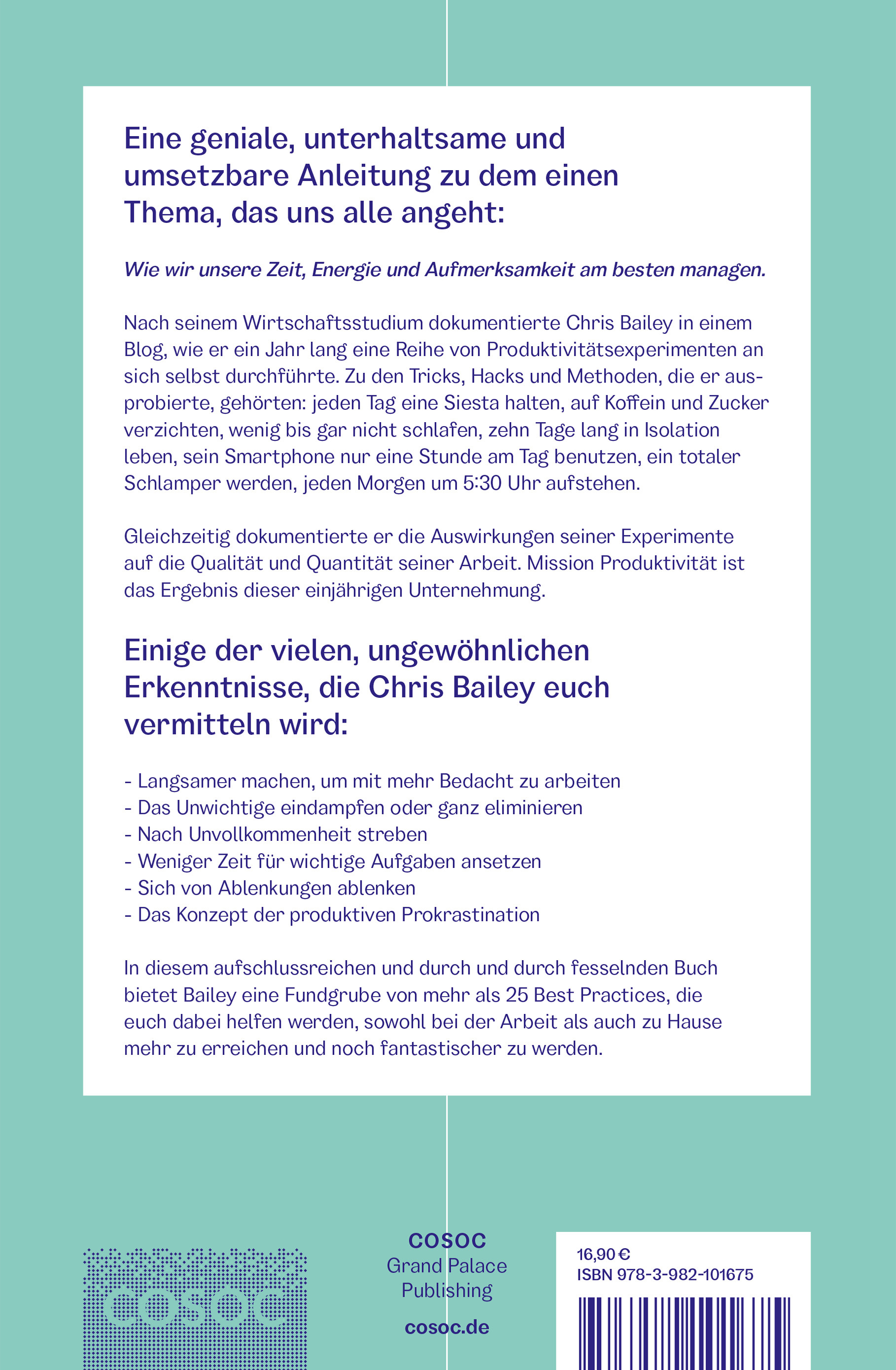 Eine geniale, unterhaltsame und leicht umsetzbare Anleitung zu dem einen Thema, das uns alle angeht: Wie wir unsere Zeit, Energie und Aufmerksamkeit am besten managen. Nach seinem Wirtschaftsstudium dokumentierte Chris Bailey in einem Blog, wie er ein Jahr la...