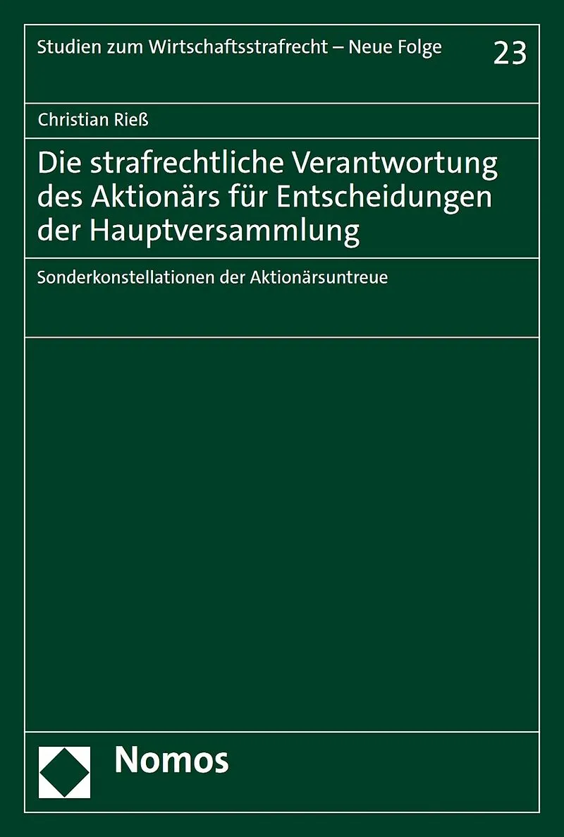 Die Arbeit behandelt die bislang ungeklärte Frage, ob Aktionäre eine Untreue zum Nachteil der Aktiengesellschaft begehen können. Zwar spricht sich die herrschende Meinung gegen eine Vermögensbetreuungspflicht von Aktionären aus; es gibt allerdings bestimmte Fä...