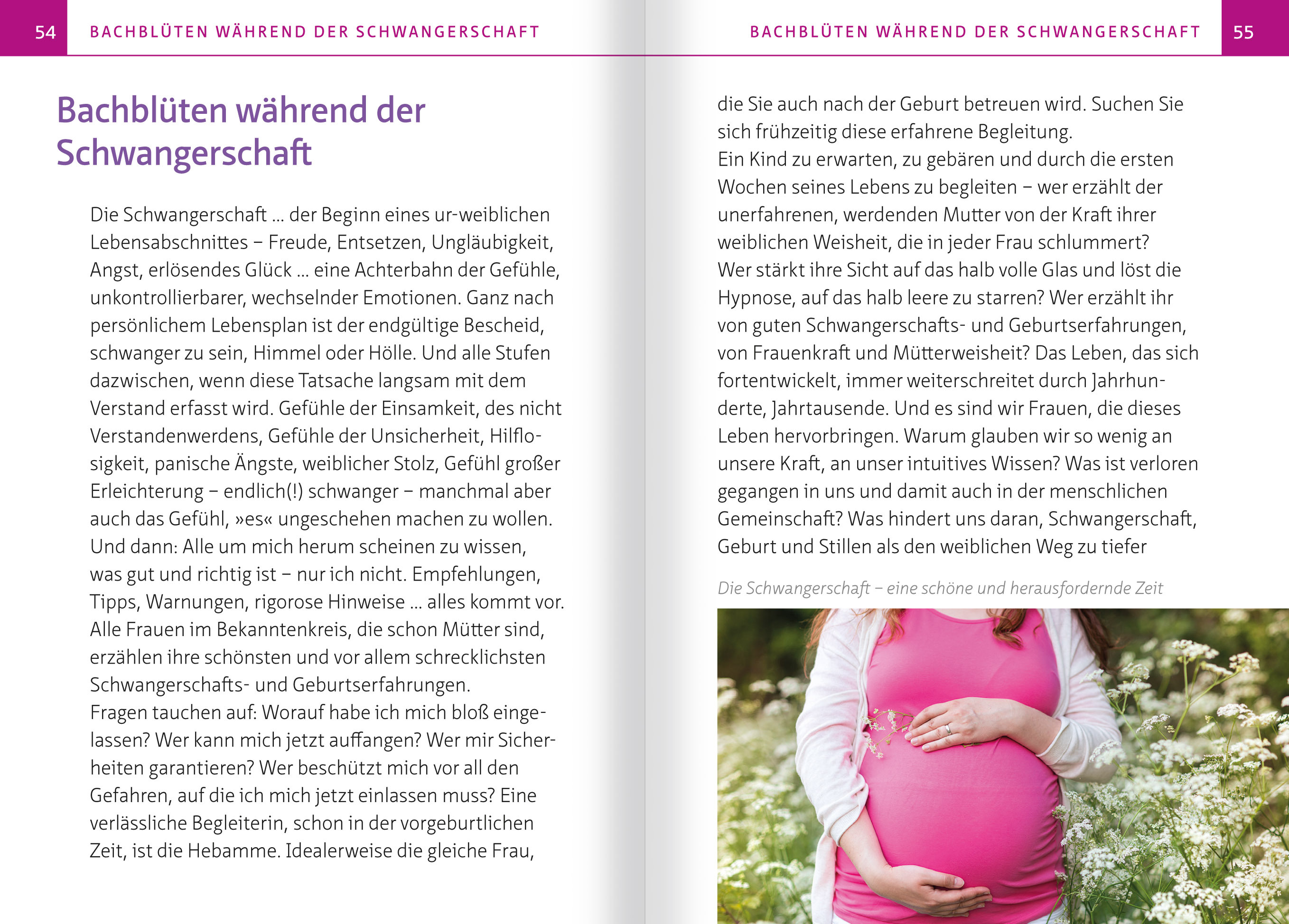 INHALT Vorwort BACHBLÜTEN VERSTEHEN UND ANWENDEN Helfer in allen Lebenslagen - Was wissen wir heute? - Anwendung von Bachblüten - Bachblüten für werdende Mütter - Anwendung bei Säuglingen und Kleinkindern - Die Mischung von Bachblüten SCHWANGERSCHAFT, GEBURT UND STILLZEIT Bachblüten im Vorfeld der Schwangerschaft - Das Nest vorbereiten - Raum für Mitgefühl schaffen - Raum für Entspannung schaffen - Raum für Frieden schaffen - Raum für Stärke schaffen - Raum für gute Beziehungen schaffen - Raum für Ehrlichkeit schaffen - Raum für Veränderung schaffen - Raum für Ruhe schaffen - Raum für andere schaffen Bachblüten während der Schwangerschaft - Hilfe bei Angst - Hilfe bei Unsicherheit - Hilfe bei Ungeduld - Hilfe bei depressiver Verstimmung - Hilfe bei Überforderung - Hilfe bei Konzentrationsmangel - Hilfe bei einer Fehlgeburt - Hilfe bei Schwangerschaftsabbruch aus medizinischen Gründen - Hilfe bei gewolltem Schwangerschaftsabbruch Bachblüten während der Geburt - Passives Verhalten überwinden - Mit Schmerz heilsam umgehen - Ungeduld meistern - Hilfe annehmen können - Gefühle zulassen - Durchsetzungskraft stärken - Fixe Vorstellungen überwinden - Abschluss der Geburt Bachblüten nach der Geburt - Unmittelbare Versorgung nach der Geburt - Bachblüten nach dem Kaiserschnitt - Bachblüten bei Wochenbettdepression - Weitere Bachblütenmischungen nach der Geburt Bachblüten während der Stillzeit - Verzögertes Einschießen der Muttermilch - Erschöpfung der stillenden Mutter - Das müde Baby - Das Stillen will nicht klappen - Starthilfe für das neue Leben - Ankunft im Elternhaus - Unruhige Nächte - Darmkoliken - Die ersten Zähne - Kleine Verletzungen Literaturverzeichnis Register