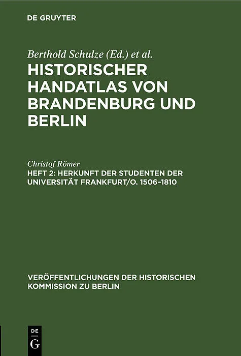 Dieser Titel, "Herkunft der Studenten der Universität Frankfurt/O. 15061810", ist eine wissenschaftliche Publikation, erschienen bei De Gruyter Brill. Ausführliche Beschreibung, Inhaltsverzeichnis und weitere Angaben finden Sie auf der Verlagswebsite: https://...