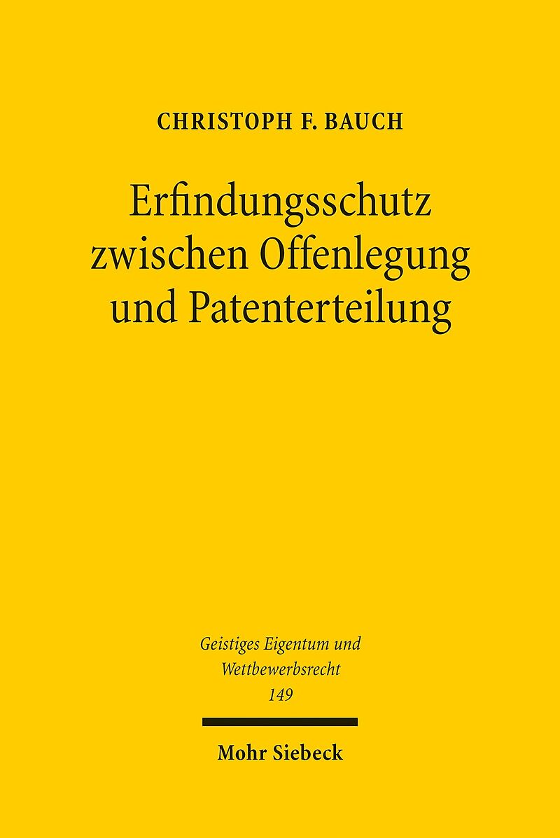 Should inventions be protected prior to material examination by the patent offices and, if so, how? Christoph F. Bauch approaches these questions by examining a variety of fundamental perspectives. Autorentext Geboren 1986; Studium der Rechtswissenschaften an ...