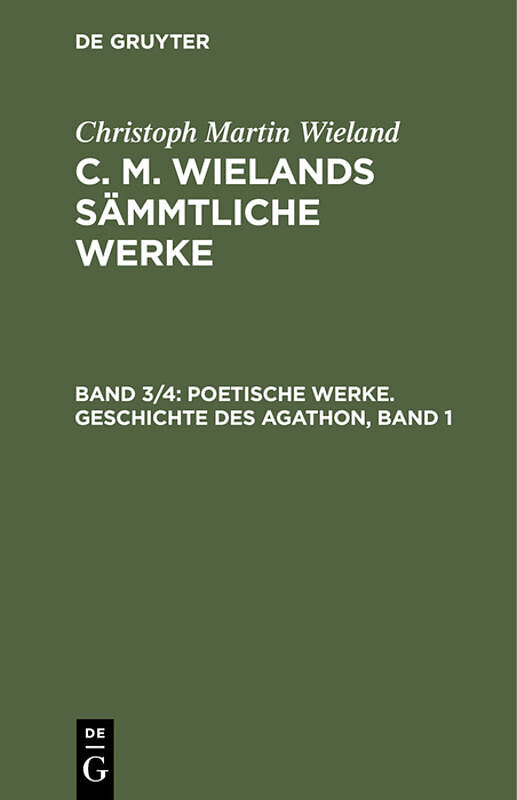 Dieser Titel, "Poetische Werke. Geschichte des Agathon, Band 1", ist eine wissenschaftliche Publikation, erschienen bei De Gruyter Brill. Ausführliche Beschreibung, Inhaltsverzeichnis und weitere Angaben finden Sie auf der Verlagswebsite: https://www.degruyter...