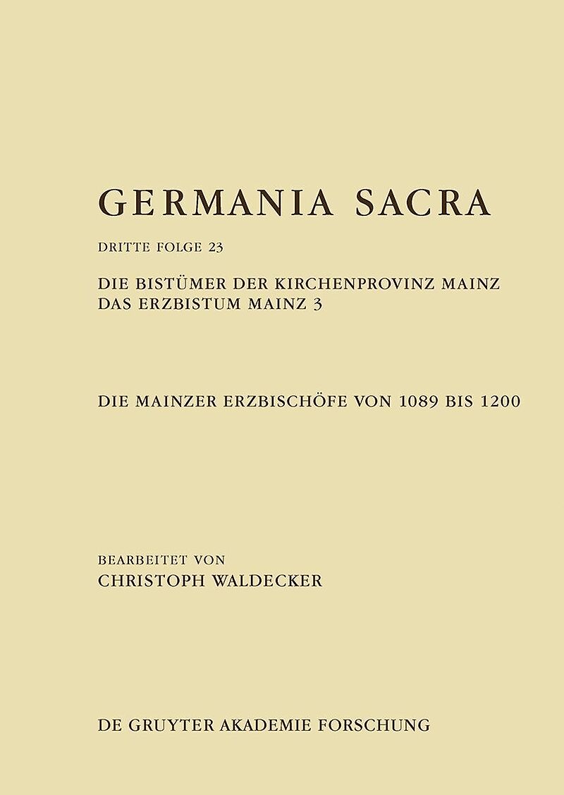 Die Bistümer der Kirchenprovinz Mainz. Das Erzbistum Mainz 3: Die Mainzer Erzbischöfe von 1089 bis 1200
