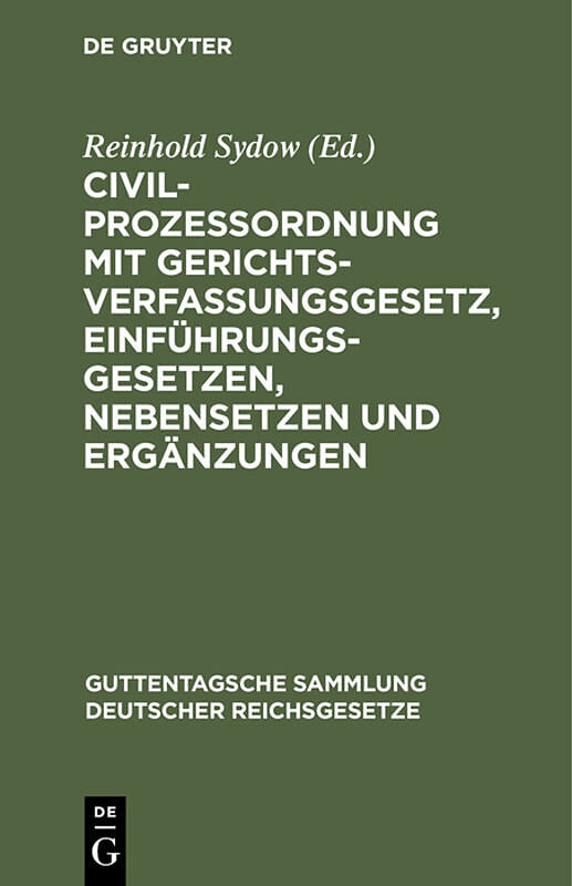 Dieser Titel, "Civilprozessordnung mit Gerichtsverfassungsgesetz, Einführungsgesetzen, Nebensetzen und Ergänzungen", ist eine wissenschaftliche Publikation, erschienen bei De Gruyter Brill. Ausführliche Beschreibung, Inhaltsverzeichnis und weitere Angaben find...