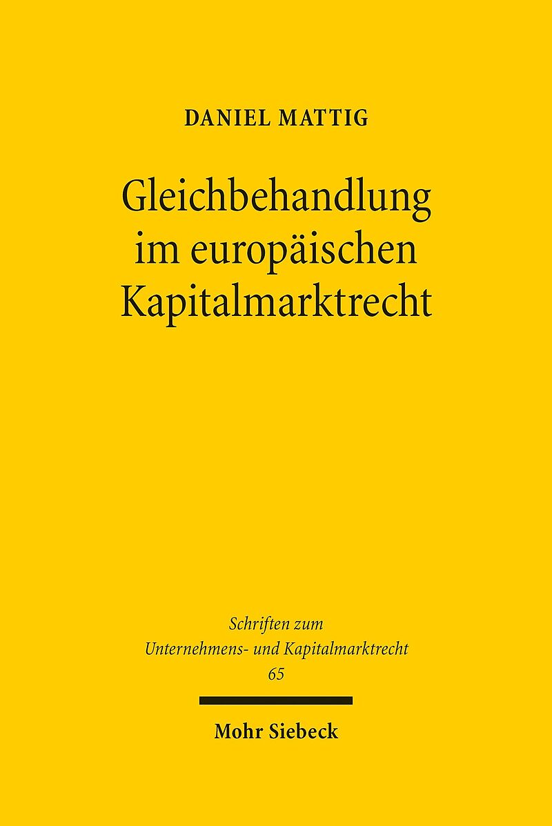 In the aftermath of the global financial crisis, European legislators have greatly intensified capital market regulation, in particular by implementing equal treatment obligations. Daniel Mattig analyses these control mechanisms and develops a general principl...