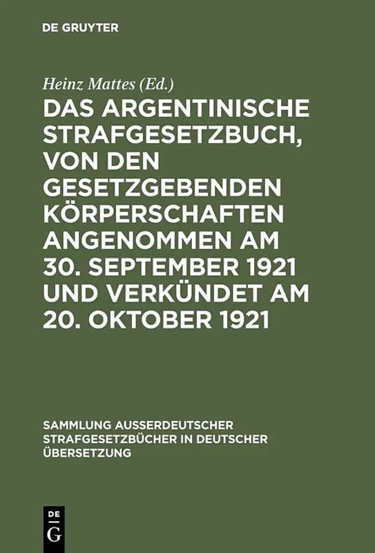 Frontmatter -- Vorwort -- Inhaltsverzeichnis -- Abkürzungsverzeichnis -- Einleitung -- I. Vorbemerkung -- II. Geschichte der argentinischen Strafgesetzgebung bis zum Inkrafttreten des geltenden StGB -- III. Einflüsse fremder Gesetzgebungswerke auf das argentin...