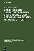 Frontmatter -- Inhaltsverzeichnis -- Teil I. Befugnisse und Maßnahmen gegenüber geistig Minderwertigen -- Teil II. Zentral- und Lokalbehörden -- Teil III. Genehmigung und Vorschriften für die Anstalten usw -- Teil IV. Allgemeine Bestimmungen -- Anhang -- Backm...