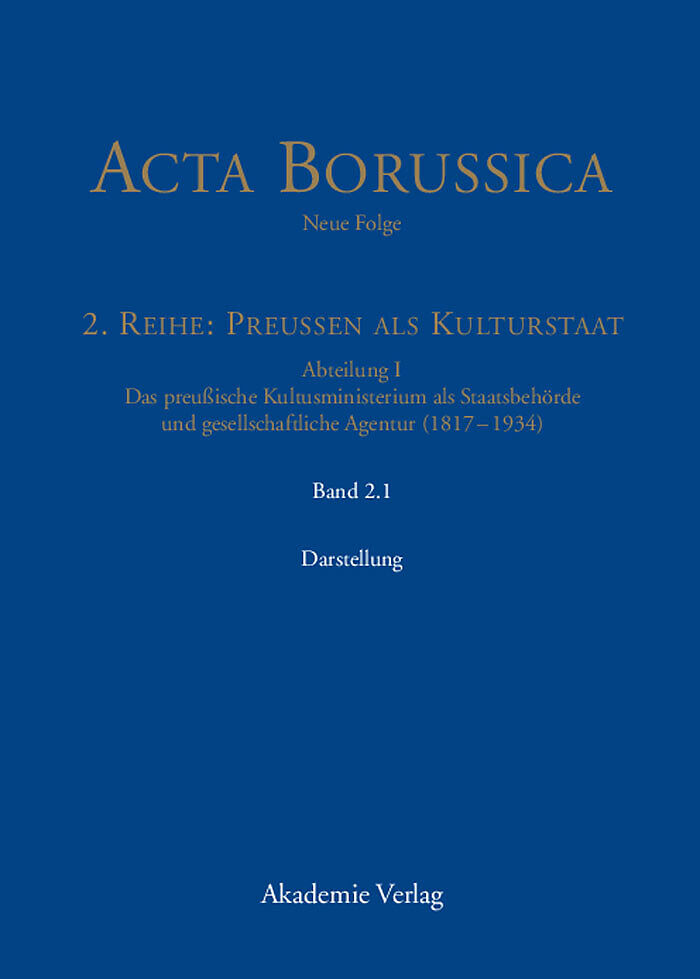 Preußens Entwicklung als Kulturstaat war ein Teilprozess der inneren Staatsbildung, der gleich seiner weiteren Ausprägung als Macht- und Militärstaat das gesamte 19. Jahrhundert beanspruchte und im Kultusministerium seinen administrativen Hauptträger besaß. Wi...