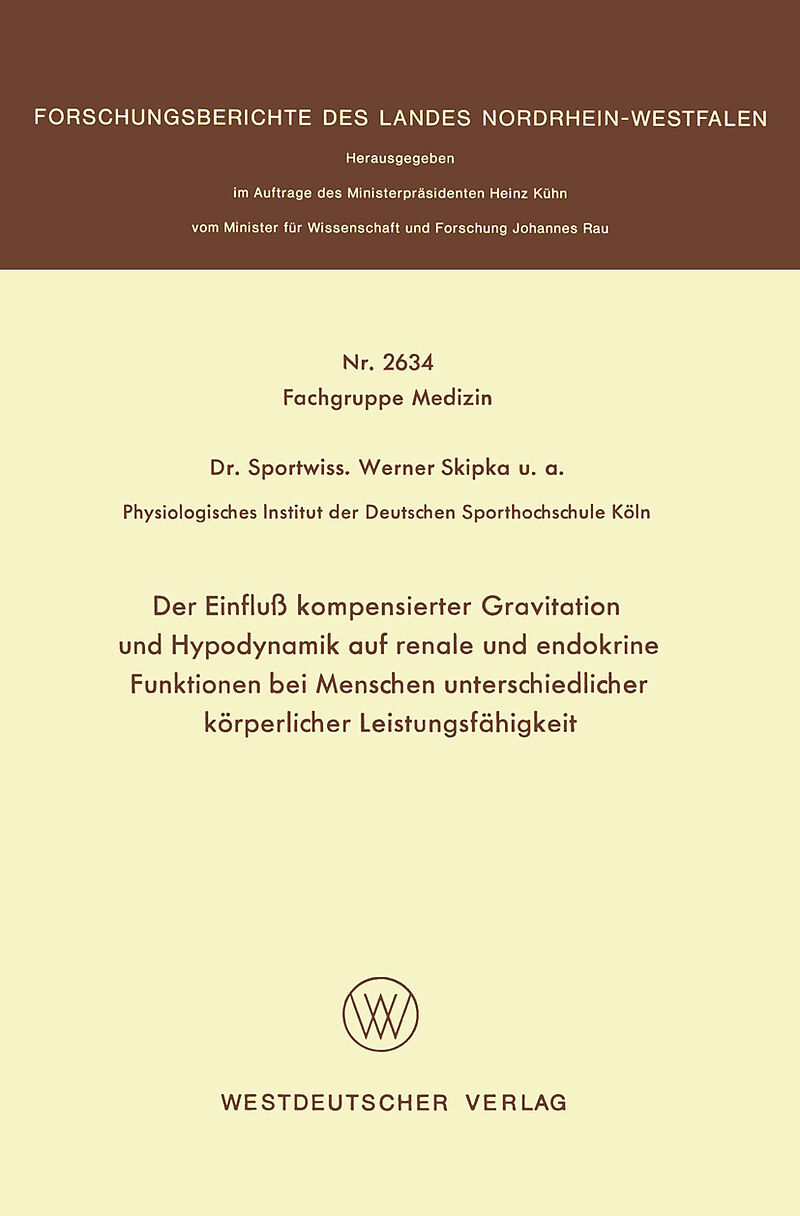 Inhalt 1. Einleitung.- 1. 1. Allgemeine Problemstellung.- 1. 2. Fragestellungen für die Vorliegende Arbeit.- 2. Die osmotische- und Wasserausscheidung sowie die Kreislaufregulation während 8-stündiger Immersion in Abhängigkeit vom Trainingszustand.- 2. 1. Lite...
