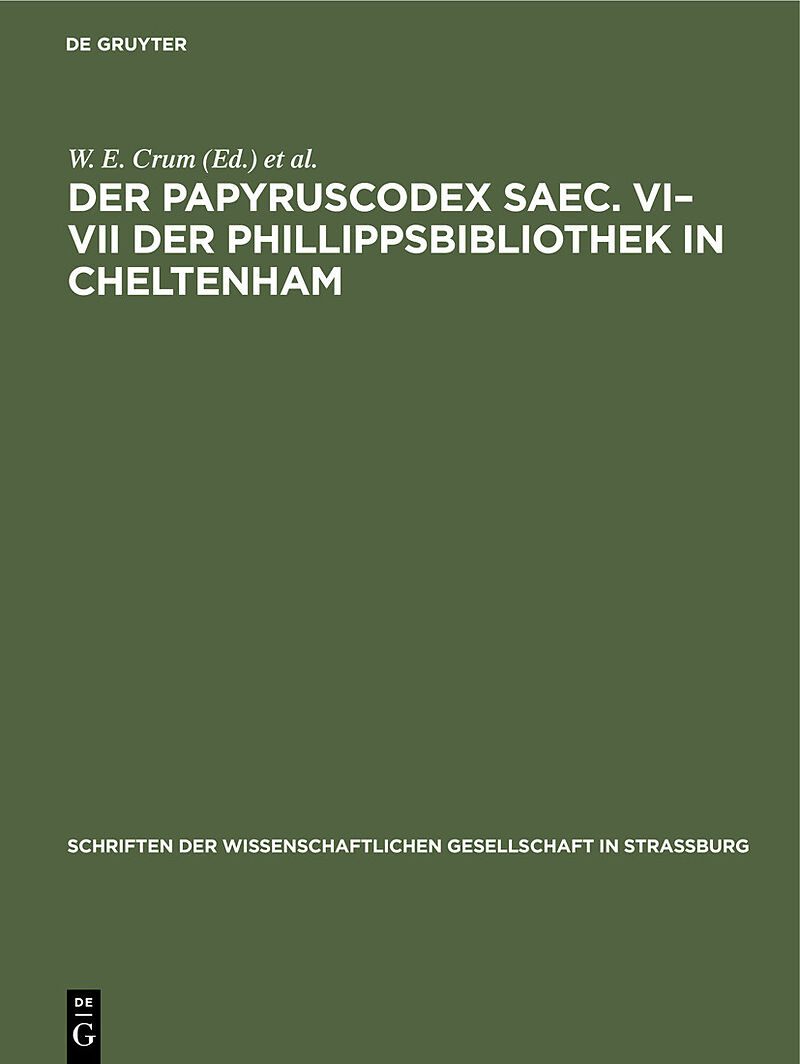 Dieser Titel, "Der Papyruscodex saec. VIVII der Phillippsbibliothek in Cheltenham", ist eine wissenschaftliche Publikation, erschienen bei De Gruyter Brill. Ausführliche Beschreibung, Inhaltsverzeichnis und weitere Angaben finden Sie auf der Verlagswebsite: ht...