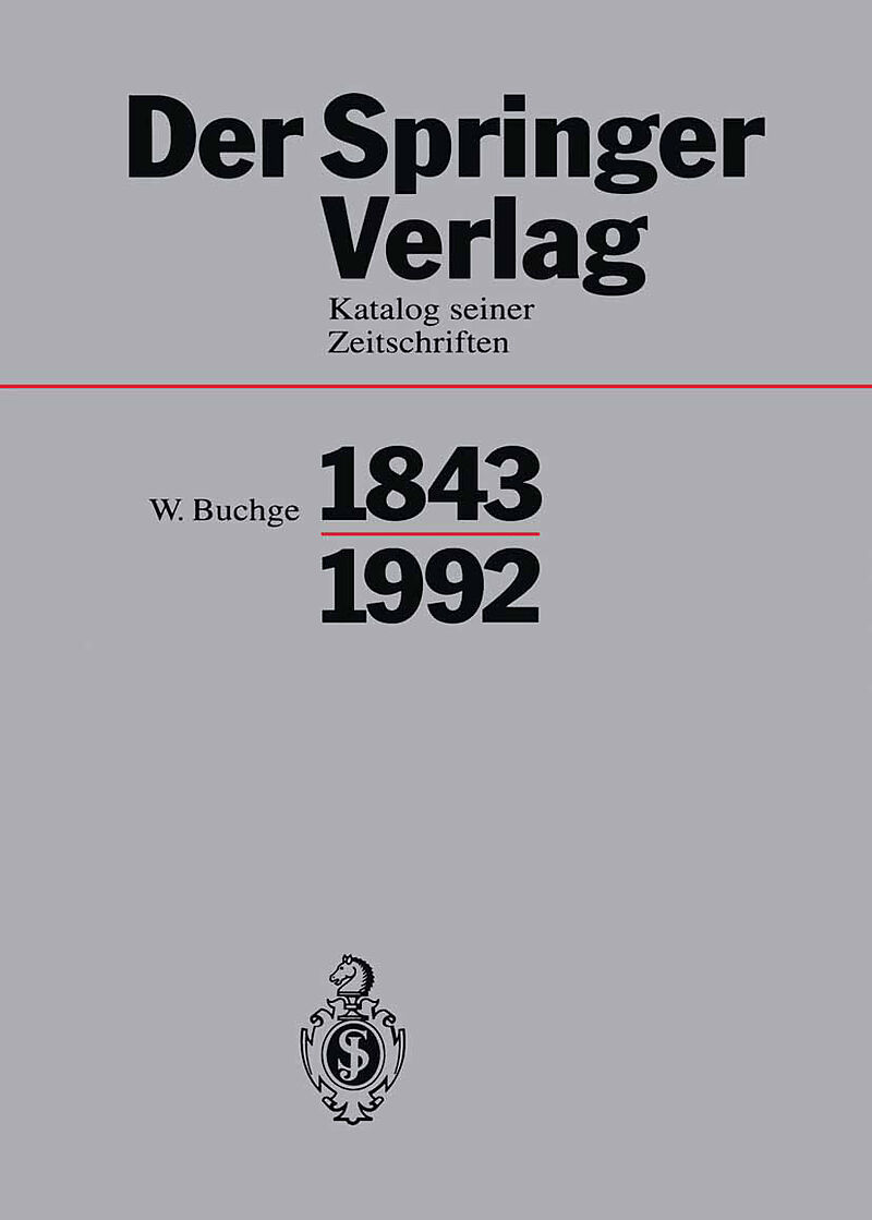Dieser Katalog weist alle seit 1843 im Springer-Verlag bis zum 30. April 1992 erschienenen Zeitschriften, einschließlich der aus anderen Verlagen übernommenen Titel, nach. Die Titelaufnahmen sind alphabetisch geordnet und beinhalten den Lebenslauf der betreffe...