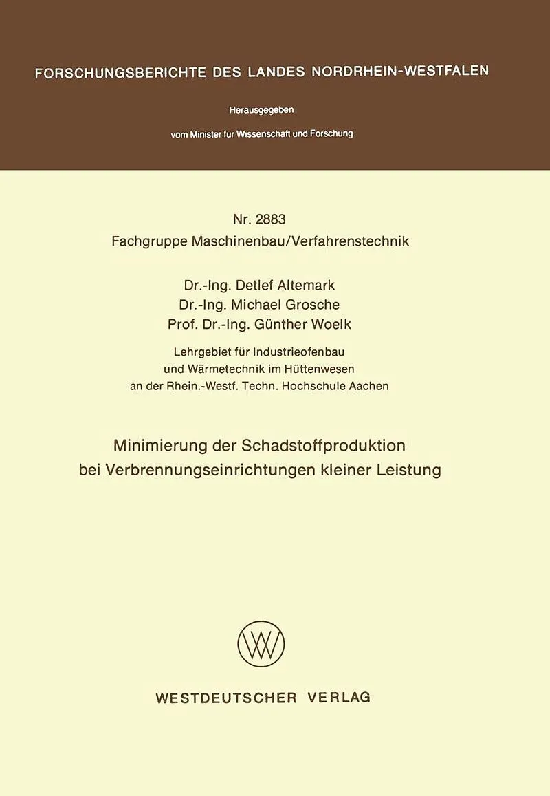 Inhalt 1. Einführung.- 2. Stand der Technik.- 2.1 Brennerkonstruktionen.- 2.2 Optimierung der Verbrennung.- 2.3 Regelung der Verbrennung.- 2.4 Meß- und Stellorgane.- 3. Die Aufgabenstellung.- 4. Entwicklung und Untersuchung eines schadstoffarmen Brenners.- 4.1...