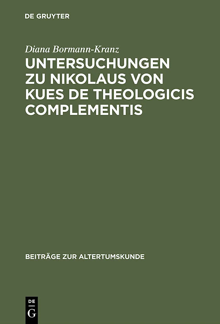 Dieser Titel, "Untersuchungen zu Nikolaus von Kues De theologicis complementis", ist eine wissenschaftliche Publikation, erschienen bei De Gruyter Brill. Ausführliche Beschreibung, Inhaltsverzeichnis und weitere Angaben finden Sie auf der Verlagswebsite: https...