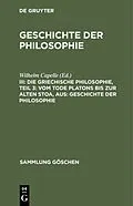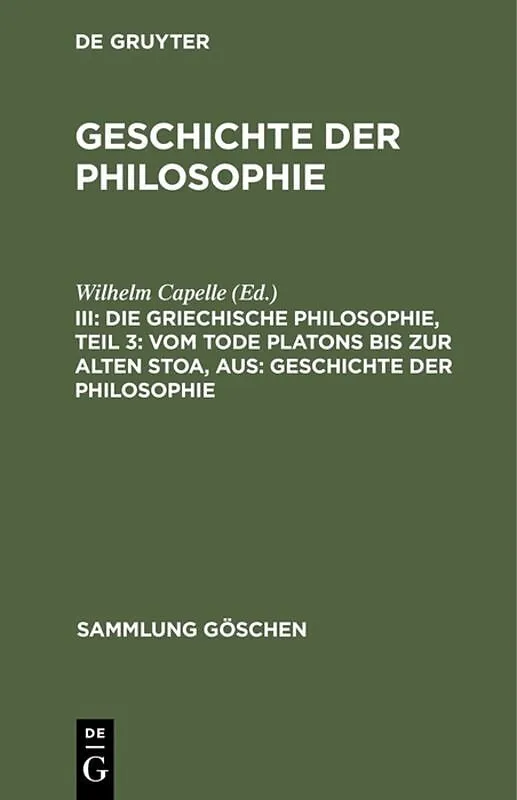 Dieser Titel, "Die griechische Philosophie, Teil 3: Vom Tode Platons bis zur Alten Stoa, aus: Geschichte der Philosophie", ist eine wissenschaftliche Publikation, erschienen bei De Gruyter Brill. Ausführliche Beschreibung, Inhaltsverzeichnis und weitere Angabe...