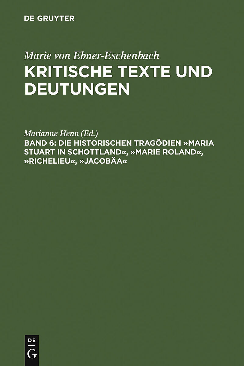 Marie von Ebner-Eschenbach (1830-1916) is recognized as one of the leading German-speaking prose writers but she began her writing with historical tragedies. For the first time, this edition presents a complete and critical genesis of the texts, based on hand...