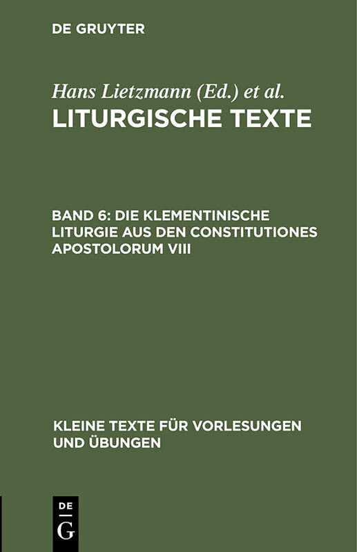 Keine ausführliche Beschreibung für "Die Klementinische Liturgie aus den Constitutiones Apostolorum VIII" verfügbar. Zusammenfassung Frontmatter -- MISSA CATECHUMENORVM -- MISSA FIDELIVM -- CANONES APOSTOLORUM -- DIE AEGYPTISCHE KIRCHENORDNUNG -- DIE ANAPHORA...