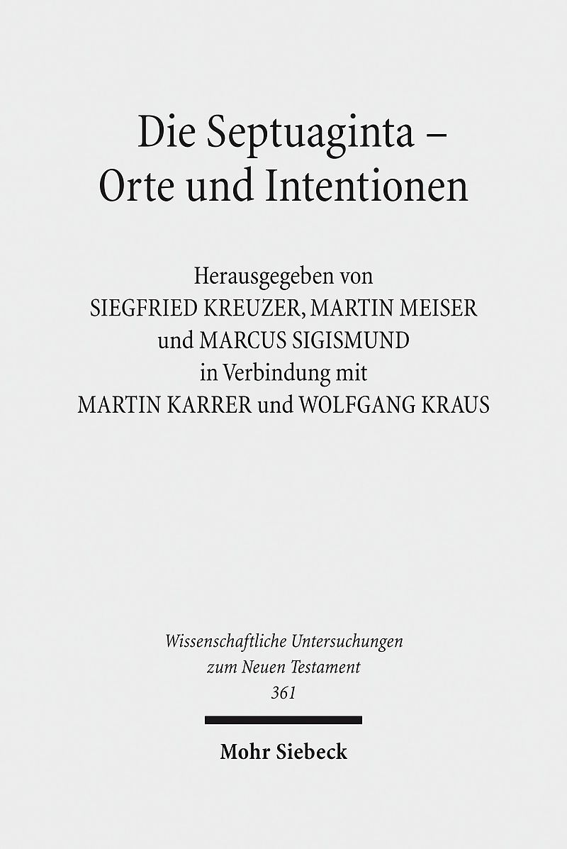 Martin Karrer: Septuaginta und antike Philosophie - Knut Usener: Plutarch und das Judentum - Plutarch und die Septuaginta? - Johann Cook: The Provenience of the Septuagint: A Case Study of LXX Proverbs; LXX Job and 4 Maccabees - Michael Lattke: Die Psalmen Salomos: Orte und Intentionen - Marcus Sigismund: Die ägyptische Rezension des JosuaLXX im Lichte der sahidischen Überlieferung - Bonifatia Gesche: Von Nordafrika über Paris nach Stuttgart: Wie kommt die verderbte Fassung der Übersetzung von Esdras A' in die Vulgata? - Siegfried Kreuzer: Zum textgeschichtlichen Ort der Dodekapropheton-Zitate im Neuen Testament
