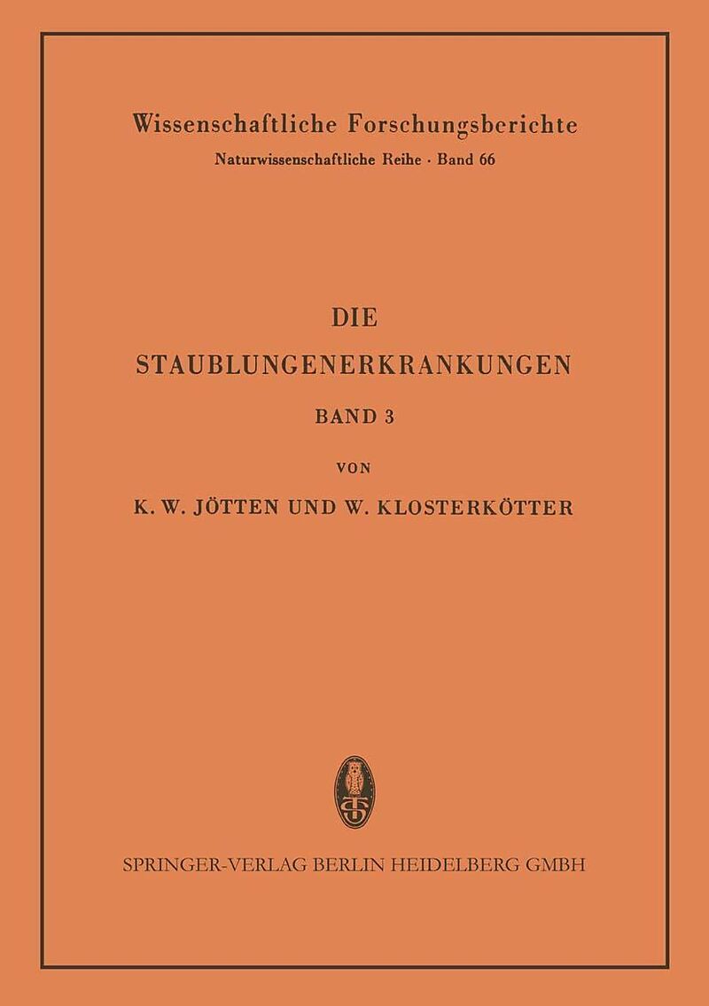 Mit dem Band III "Die Staublungenerkrankungen" werden sämtliche Vorträge und Diskussionen der 3. internationalen Staublungentagung vorgelegt, die vom 29. bis 31. Oktober 1957 in Münster stattfand. Der Inhalt vermittelt nicht nur einen guten Überblick über den ...Mit dem Band III "Die Staublungenerkrankungen" werden sämtliche Vorträge und Diskussionen der 3. internationalen Staublungentagung vorgelegt, die vom 29. bis 31. Oktober 1957 in Münster stattfand. Der Inhalt vermittelt nicht nur einen guten Überblick über den Stand der Forschung, sondern zeigt auch die Ansatzpunkte für die weiteren Auf gaben und läßt im Vergleich mit Band I (1950) und Band II (1954)" deut lich erkennen, welche beachtlichen Fortschritte erzielt worden sind. Wie 1949 und 1953 so ist auch dieser Kongreß der Initiative von Professor KARL-WILHELM J ÖTTEN t zu verdanken. Ihm war der inter nationale Austausch von Ergebnissen und Erfahrungen auf dem so kom plexen Gebiete der Staublungenforschung ein besonderes Anliegen. Es ist daher gewiß gerechtfertigt, in diesem Bericht seiner dankbar zu gedenken. Zum Abschluß der Tagung hat K. W. JÖTTEN der Hoffnung Ausdruck gegeben, daß man sich in 4 Jahren in Münster wieder versammeln dürfe. Im engen Kreise jedoch hegte er für seine Person Zweifel, wohl wissend, daß jenseits des 70. Lebensjahres die Jahre kostbar werden und Ge schenke sind. Nun ist er am 13. Mai 1958 nach kurzer Krankheit gestor ben. Mit ihm ist eine geprägte, kraftvolle Persönlichkeit, ein erfolgreicher Forscher und begeisterter Hochschullehrer dahingegangen. Sein Tod hinterläßt eine Lücke, die kaum zu schließen sein wird.