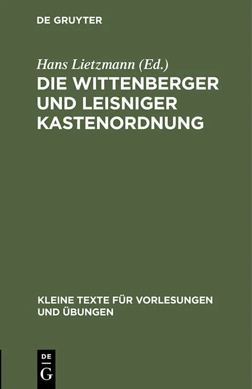 ZusammenfassungFrontmatter -- DIE WITTENBERGER UND LEISNIGER KASTENORDNUNG -- Backmatter