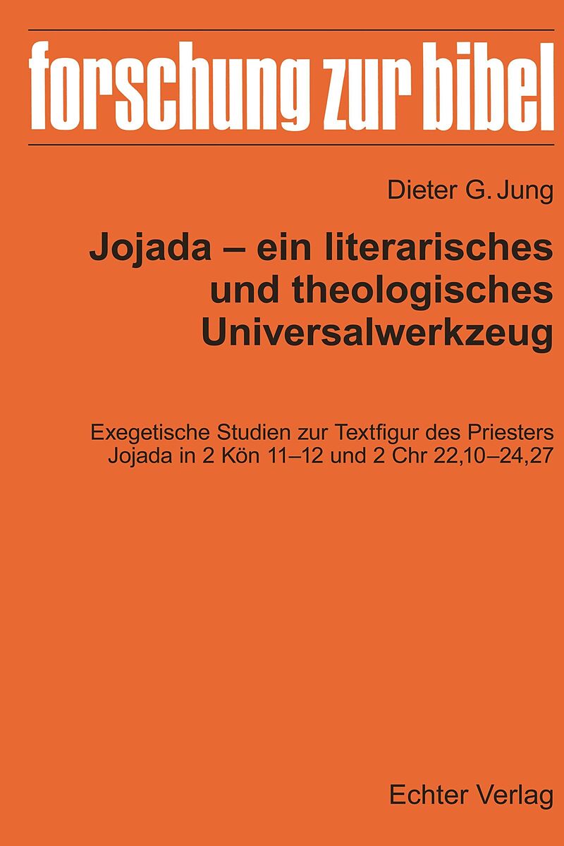 Jojada ein literarisches und theologisches Universalwerkzeug. Exegetische Studien zur Textfigur des Priesters Jojada in 2 Kön 11-12 und 2 Chr 22,10-24,27 in der Reihe Forschung zur Bibel ist literaturwissenschaftlich angelegt. Die Studie analysiert diese Texte...