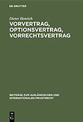 Dieser Titel, "Vorvertrag, Optionsvertrag, Vorrechtsvertrag", ist eine wissenschaftliche Publikation, erschienen bei De Gruyter Brill. Ausführliche Beschreibung, Inhaltsverzeichnis und weitere Angaben finden Sie auf der Verlagswebsite: https://www.degruyterbri...