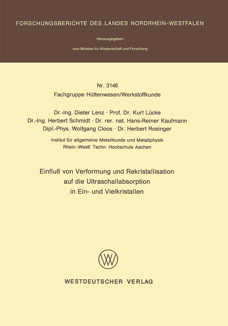 Inhalt 1. Einleitung.- 2. Theorien der untersuchten Absorptionsmechanismen.- 2.1 Vorbemerkung.- 2.2 Theorie der Kornstreuung.- 2.3 Granato-Lücke Theorie der Versetzungsresonanzdämpfung.- 2.4 Erweiterung der Theorie für hohe Versetzungsdichten.- 2.5 Berücksicht...