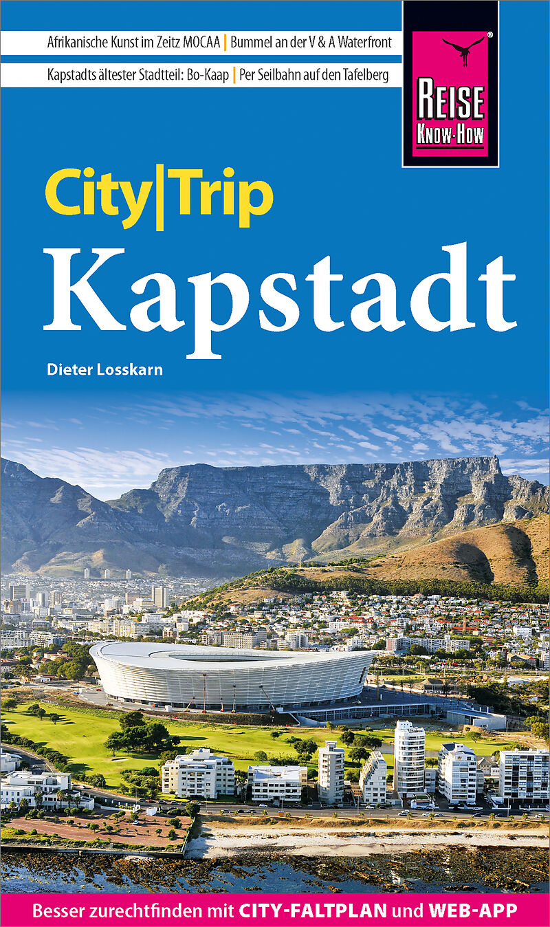 Dazu: kostenlose Web-App für Smartphone, Tablet und PC mit Stadtplan- und Satellitenansichten passend zum Text, Routenführung zu allen beschriebenen Sehenswürdigkeiten, Verlauf des Stadtspaziergangs, seitenbezogenen Updates nach Redaktionsschluss sowie einem Mini-Audiotrainer Afrikaans.
