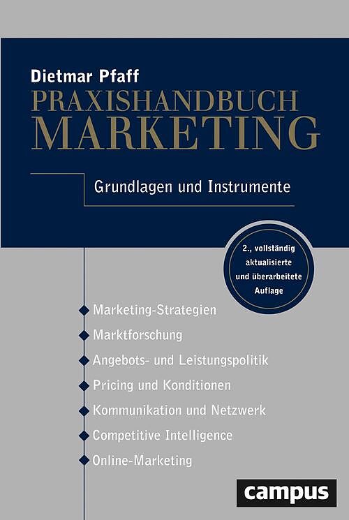 Geballtes Marketingwissen - sofort umsetzbar Der Berufsalltag im Marketing ist vielschichtig und themenreich. Die zweite, komplett aktualisierte und vollständig überarbeitete Neuauflage des Praxishandbuch Marketing schafft Ordnung im Methodenkatalog und zeigt...Geballtes Marketingwissen - sofort umsetzbar Der Berufsalltag im Marketing ist vielschichtig und themenreich. Die zweite, komplett aktualisierte und vollständig überarbeitete Neuauflage des Praxishandbuch Marketing schafft Ordnung im Methodenkatalog und zeigt, wie die wichtigsten Strategien und Instrumente erfolgreich umgesetzt werden. Dietmar Pfaff, Ehrenprofessor für Internationales Marketing und Management in China und Hochschullehrer für Medienmanagement in Deutschland, erklärt ausführlich die aktuellen Forschungsansätze anhand praxisorientierter Beispiele. Empirische Methoden der qualitativen Forschung werden diskutiert und moderne Tools wie Design Thinking sowie Lego Serios Play präsentiert. Außerdem werden der Nutzen und die Erfolgsfaktoren von digitalem Marketing via WhatsApp und WeChat vorgestellt. Praxishilfen, Fallbeispiele, Übungen, Checklisten und umfangreiche Download-Inhalte machen das Buch zu einem unentbehrlichen Werkzeugkoffer für alle Marketeers.
