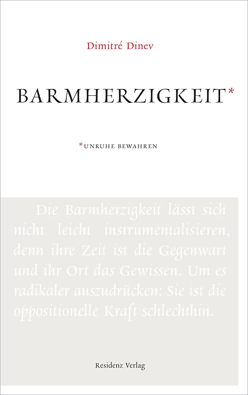 Anachronistische Themen - neu gedacht Barmherzigkeit - was hat dieser Begriff in unserer Gesellschaft für eine Bedeutung? Oder hat er gar keinen mehr? Dimitré Dinev hat sich in vier kurzen Essays mit dieser Thematik beschäftigt. Er erzählt von persönlichen Erl...