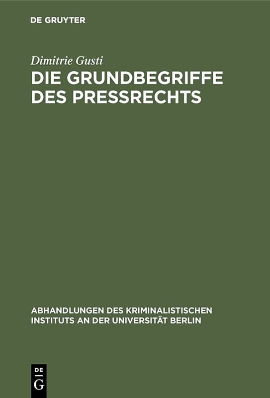Dieser Titel, "Die Grundbegriffe des Preßrechts", ist eine wissenschaftliche Publikation, erschienen bei De Gruyter Brill. Ausführliche Beschreibung, Inhaltsverzeichnis und weitere Angaben finden Sie auf der Verlagswebsite: https://www.degruyterbrill.com/isbn/...