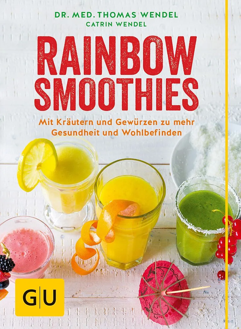Rainbow Smoothies - kleine Ursache, große Wirkung: Die Lösung heißt: Smoothies! Oder noch besser: Smoothie Rezepte, bunt wie der Regenbogen. Mit der natürlichen Heilkraft von Kräutern und Gewürzen, mit gesundem Raw Food und Superfood wie Acai oder Aloe vera. Mit vielen frischen Früchten und Gemüse. Und vor allem so abwechslungsreich, aromatisch und lecker, dass die Ernährungsumstellung Spaß macht und schmeckt! In Rainbow Smoothies von GU stellt der Münchner Anti-Aging-Arzt Dr. med. Thomas Wendel über 60 neue Smoothie Rezepte vor, mit denen wir uns fit und gesund trinken können. Ob als morgendlicher Kick-Start zum Frühstück, ob als Detox Smoothie to go, als Power-Drink fürs Büro, Energie-Booster für die Sporttasche oder als entspannender Abend-Snack aus dem Glas: Rainbow Smoothies sind bunte gesunde Smoothies aus dem Küchenmixer, die mit dem besonderen Wirkstoff-Mix aus heilsamen Kräutern, Gewürzen und frischen Zutaten punkten. Gesunde Ernährung, die schmeckt!