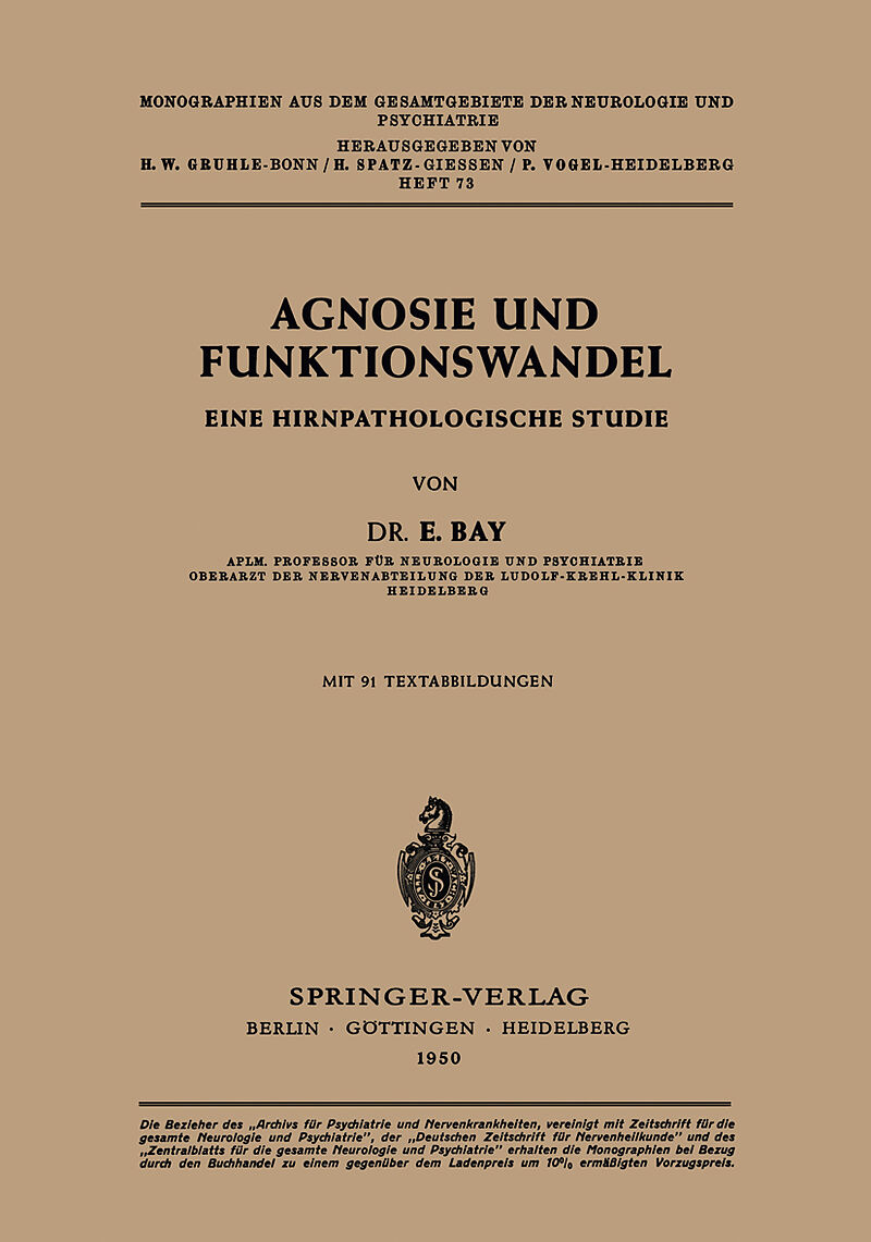 Inhalt sverzeichnisr.- A. Einleitung.- B. Taktile Agnosie.- C. Optische Agnosie.- 1. Untersuchungsmethodik.- 2. Eigene Fälle.- 3. Normale und pathologische Wahrnehmung.- 4. Objektagnosie.- 5. Simultanagnosie.- 6. Gestaltzerfall.- 7. Optisch-räumliche Agnosie.-...