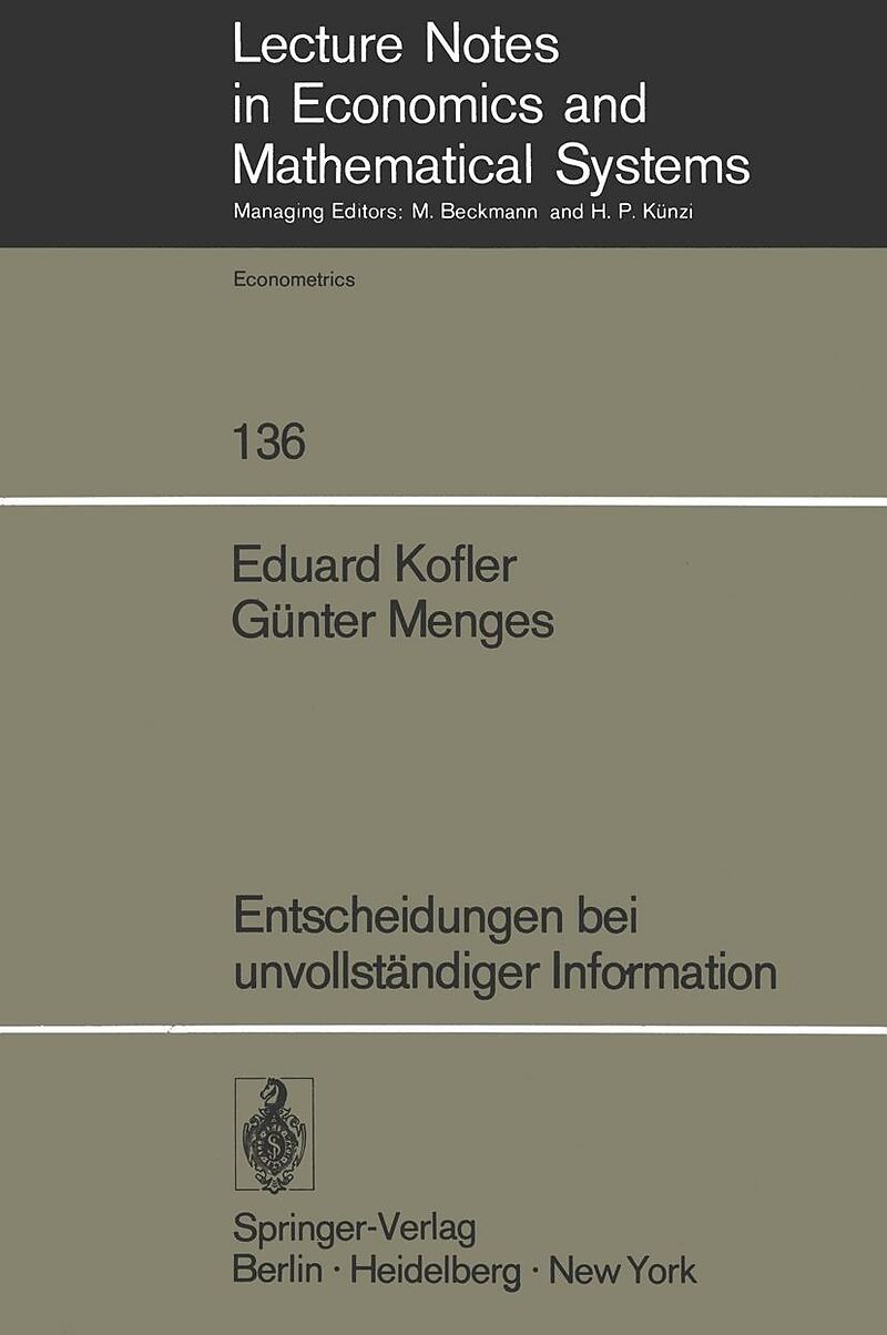 Inhalt 1. Kapitel: Einführung.- § 1. Historische Notizen.- § 2. Das Entscheidungssubjekt.- § 3. Die Entscheidung.- § 4. Aktionen.- § 5. Die Zustände der Realität, die Ungewißheit und ihre Reduktion.- § 6. Die Entscheidungskonsequenzen (Ergebnisse) und ihr Nutz...