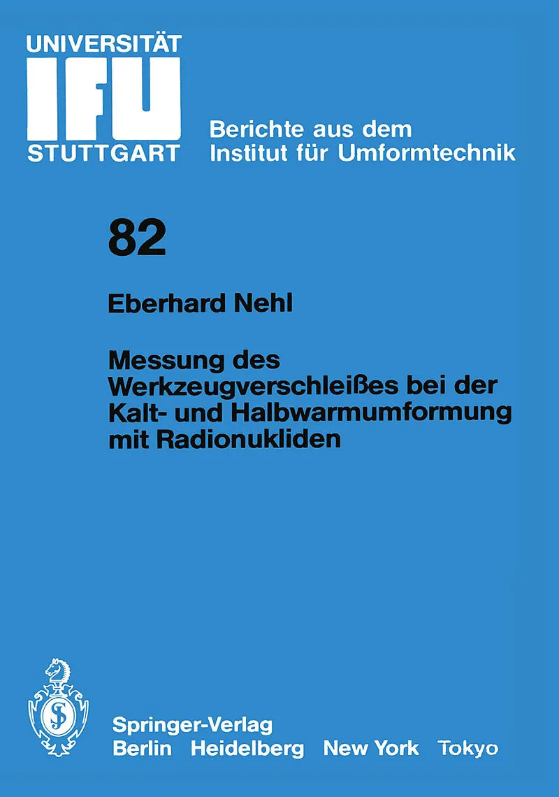 Inhalt 1 Einleitung.- 2 Stand der Kenntnisse und Aufgabenstellung.- 3 Verschleiß.- 3.1 Grundlagen.- 3.2 Verschleiß bei der Massivumformung.- 4 Kurzzeit-Verschleißprüfverfahren.- 4.1 Allgemeines.- 4.2 Verschleißmessung mit der Neutronenaktivierungsanalyse.- 4.3...