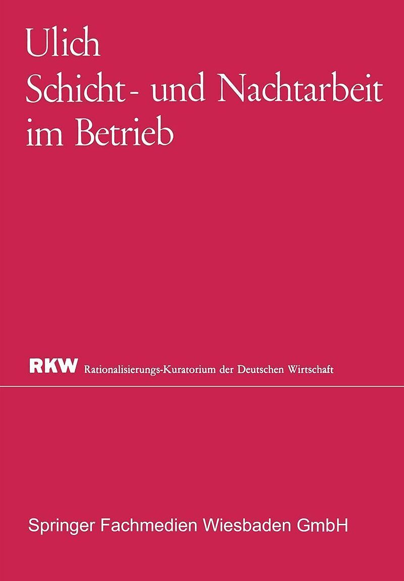 Im Jahre 1961 erschien eine kleine RKW-Broschüre »Nacht- und Schichtarbeit« einige Forschungsergebnisse und Erfahrungen über physische und psychische Be lastungen (c 23, Beuth-Vertrieb GmbH, Berlin, Frankfurt, Köln, 25 Seiten). Das Interesse an di,es,er Schrif...