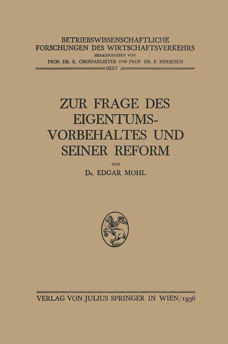 Zur Frage des Eigentumsvorbehaltes und Seiner Reform