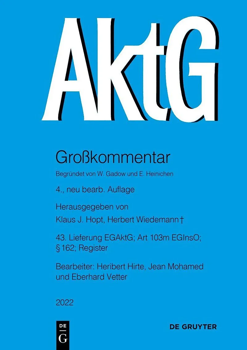 The 43rd installment of the 4th edition of this extensive commentary on the German Stock Commentary Act contains a commentary on the Introductory Act to the German Stock Corporation Act. Autorentext Heribert Hirte, Universität Hamburg; Jean Mohamed, Hamburg; E...