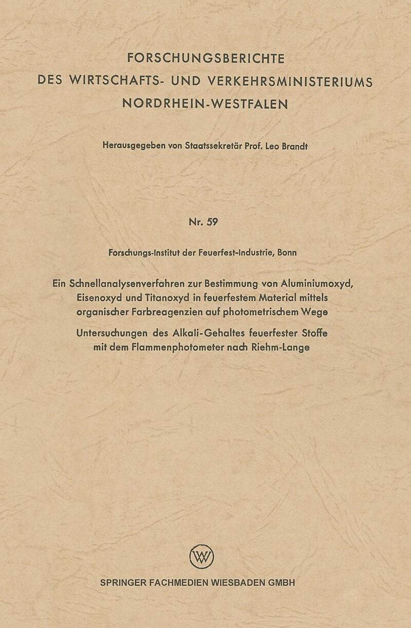 Inhalt Gliederung.- I. Ein Schnellanalysenverfahren zur Bestimmung von Aluminiumoxyd, Eisenoxyd und Titanoxyd in feuerfestem Material mittels organischer Farbreagenzien auf photometrischem Wege.- II. Untersuchungen des Alkaligehaltes feuerfester Stoffe mit dem...