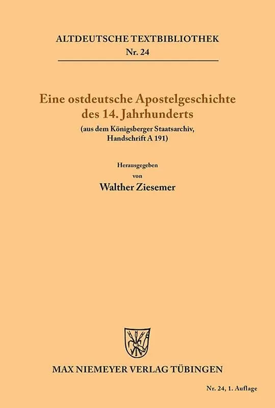 Dieser Titel, "Eine ostdeutsche Apostelgeschichte des 14. Jahrhunderts", ist eine wissenschaftliche Publikation, erschienen bei De Gruyter Brill. Ausführliche Beschreibung, Inhaltsverzeichnis und weitere Angaben finden Sie auf der Verlagswebsite: https://www.d...