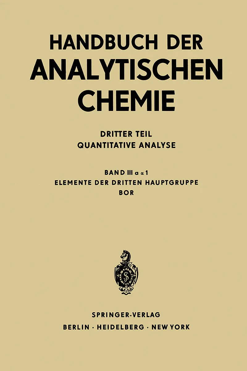 Inhalt 1 Die analytischen Eigenschaften des Bors.- 1.1 Analytisch genutzte Reaktionen.- 1.2 Trennverfahren.- 1.3 Bestimmungsverfahren.- 2 Probenvorbereitung.- 2.1 Gefäßmaterialien bei Borbestimmungen.- 2.2 Verflüchtigung von Borsäure beim Kochen, Eindampfen, V...