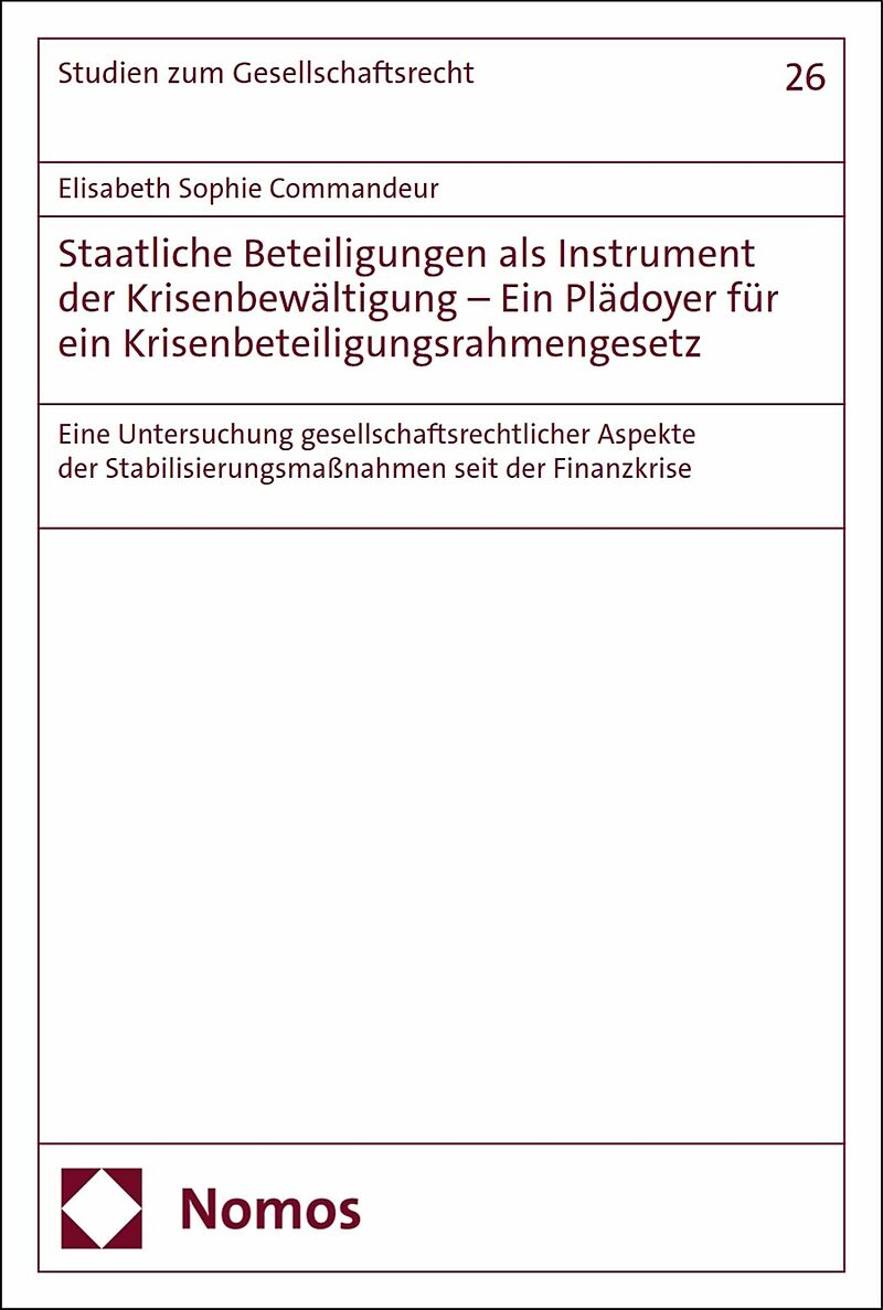 Seit der Finanzkrise 2008 beteiligen sich staatliche Institutionen zunehmend an Unternehmen in existenziellen Krisen zu Zwecken derer Rettung. Die Arbeit analysiert gesellschaftsrechtliche Aspekte der wesentlichen Stabilisierungsgesetze wie dem Finanzmarktstab...