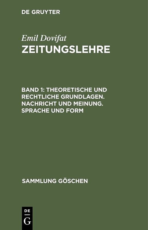 Keine ausführliche Beschreibung für "Theoretische und rechtliche Grundlagen. Nachricht und Meinung. Sprache und Form" verfügbar. Zusammenfassung Frontmatter -- Inhalt des 1. Bandes -- Inhalt des 2. Bandes -- ZEITUNGSLEHRE UND ALLGEMEINE PUBLIZISTIK -- DIE ZEI...
